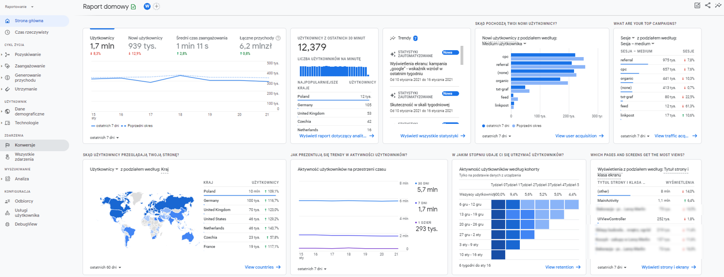 Jeśli wykorzystujesz już Firebase for Google Analytics (GA aplikacji mobilnych) Twoje dane historyczne będą dostępne w GA4. Inaczej jest w przypadku Universal Analytics (GA dla stron internetowych), który ze względu na zupełnie odmienny model danych musi być skonfigurowany od nowa – dane będą zbierane od momentu konfiguracji, dlatego warto zrobić to jak najszybciej. Nie musimy się natomiast martwić, że dane historyczne przepadną – zawsze będzie można zestawić je ze sobą w dashboardach Google Data Studio.
