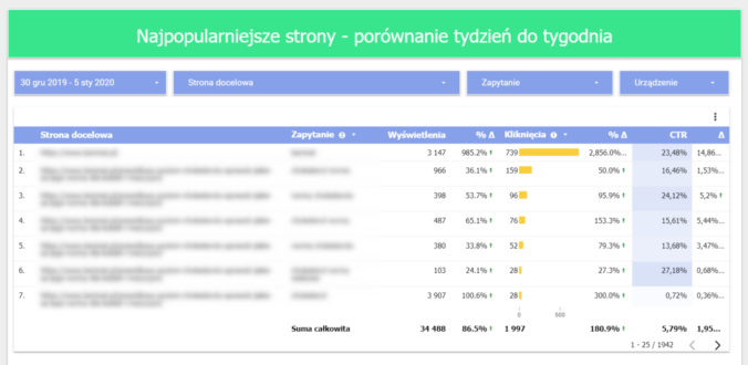 Wygodniejsze jest również przeglądanie różnego rodzaju tabel z danymi. Jeśli chcemy przejrzeć kilka setek adresów URL, wystarczy, że sami klikniemy kolejną stronę. Nie musimy ograniczać się do pokazania jedynie TOP20 wyników w obawie, by nie zajmowały za dużo miejsca.