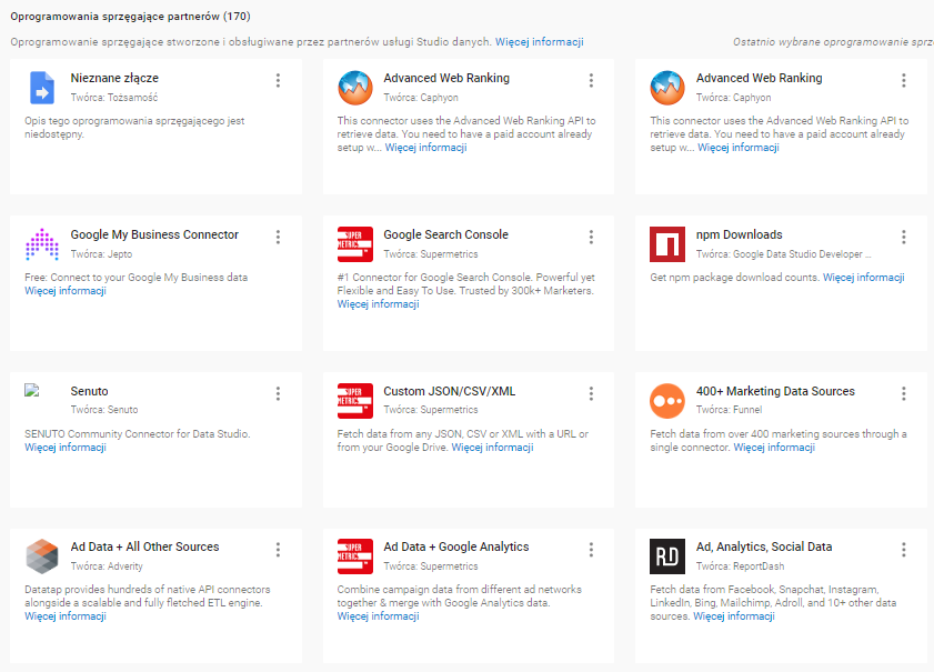 Oprócz tego istnieje możliwość integracji danych z oprogramowaniem partnerów. Obecnie jest to 170 konektorów, co jest już całkiem pokaźną liczbą, jeśli chodzi o różnorodność i przydatność danych.