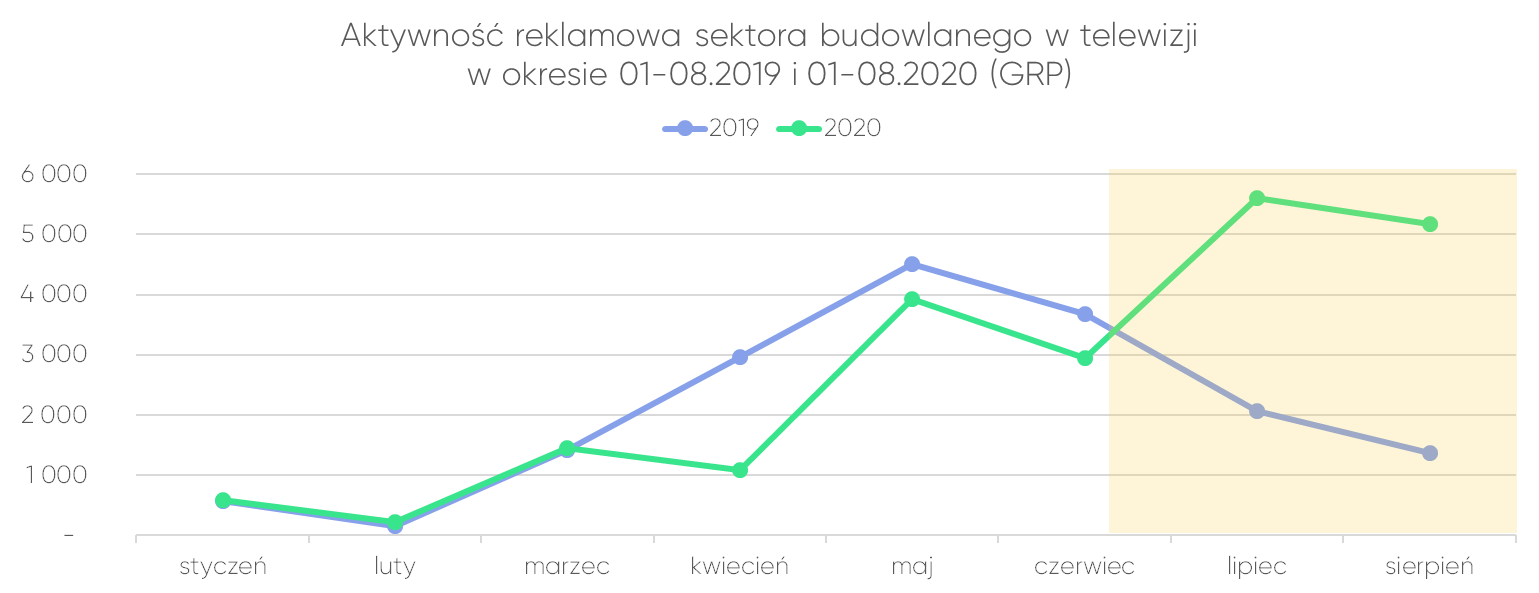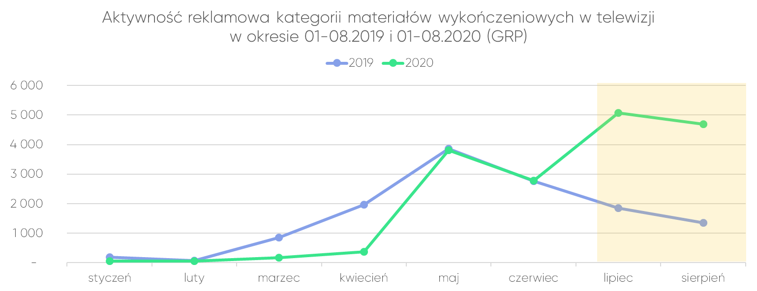 Jest to szczególnie widoczne w kategorii materiałów wykończeniowych, w której w lipcu odnotowano 274% wzrost ilości wyemitowanych GRP w porównaniu z rokiem ubiegłym, w sierpniu z kolei ich ilość zwiększyła się ponad trzykrotnie:
